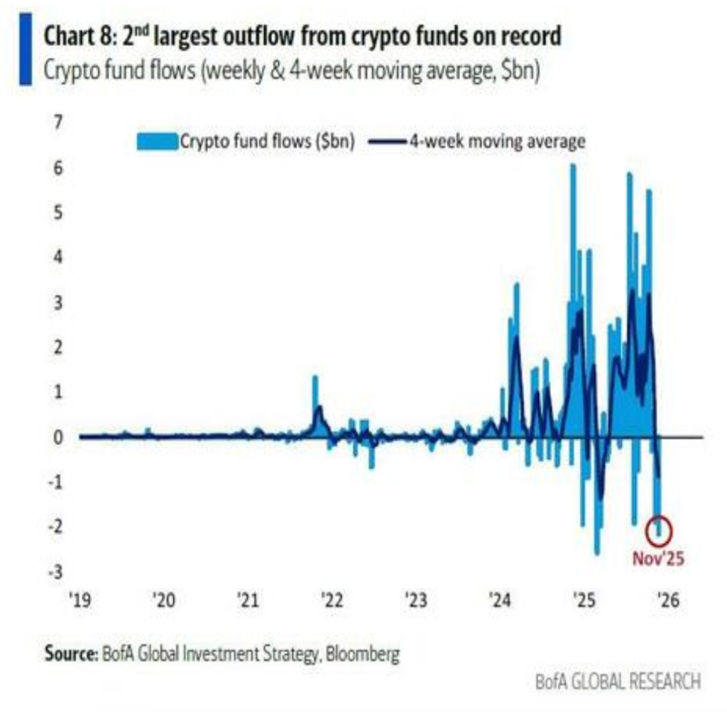 Despite recent heavy losses in cryptocurrencies, with both Bitcoin and Ethereum experiencing sharp declines, Hartnett believes that cryptocurrencies will be the first to detect the Federal Reserve’s market rescue actions. According to Bank of America’s November fund manager survey, cryptocurrencies account for only 0.4% of institutional asset allocation, but retail inflows into the cryptocurrency market reached a record $46 billion in 2025. Derivatives trading currently accounts for 74% of cryptocurrency trading volume, making it a frontier for liquidity and speculation.